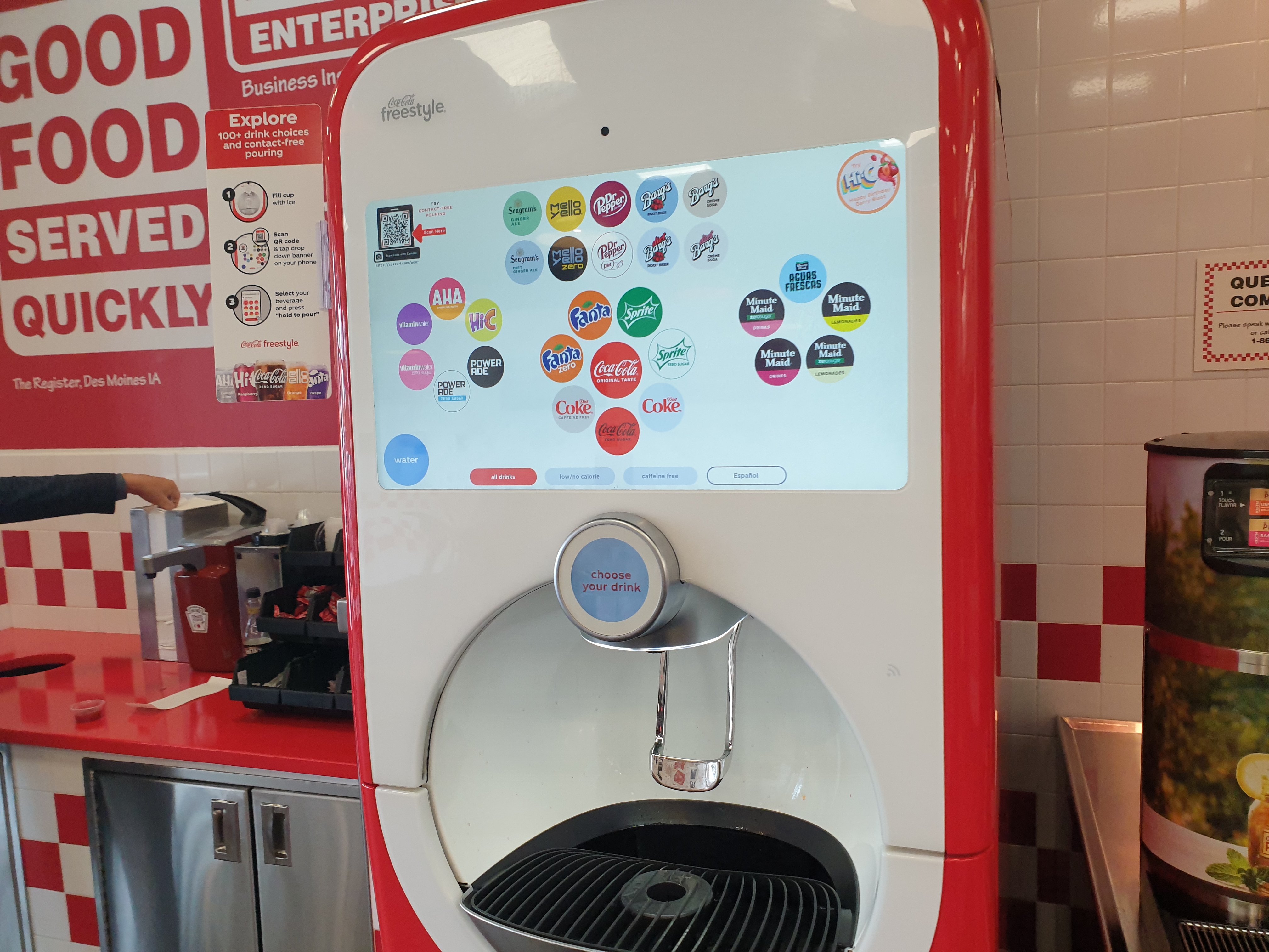 음료는 터치패드로 원하는만큼 마실 수 있다.