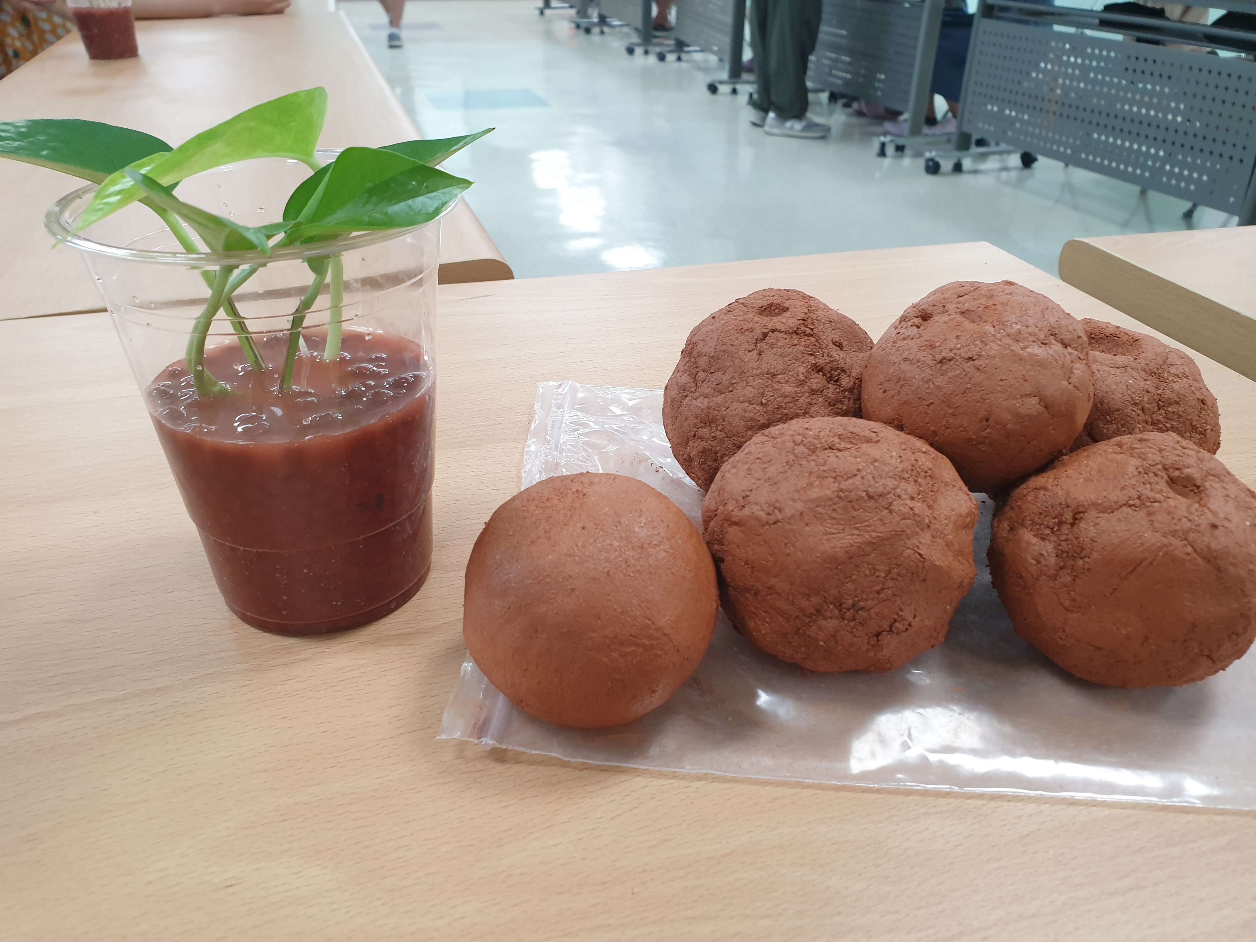 일주일쯤 그늘에 두면 하얗게 좋은 미생물이 자라나고 흙공을 화분이나 하천에 던져주면 환경에 좋다고 한다.