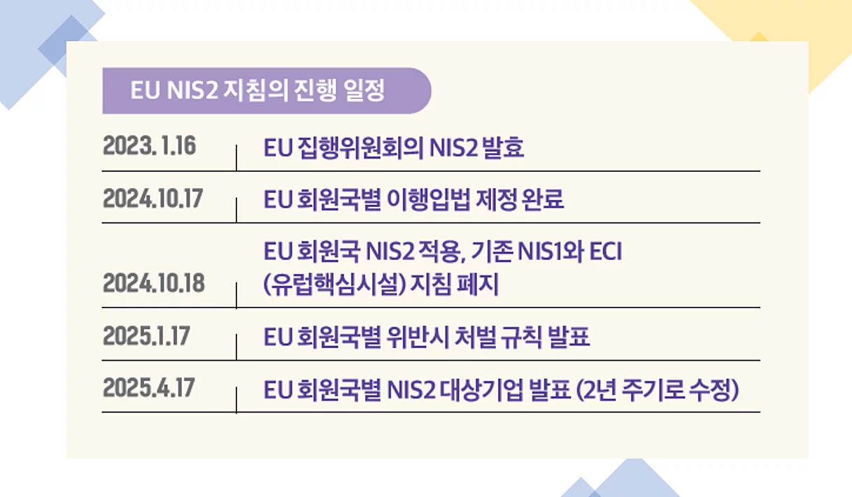 . 2024년 10월 17일까지 NIS2 요구 사항을 준수하기 위한 적절한 조치 필요