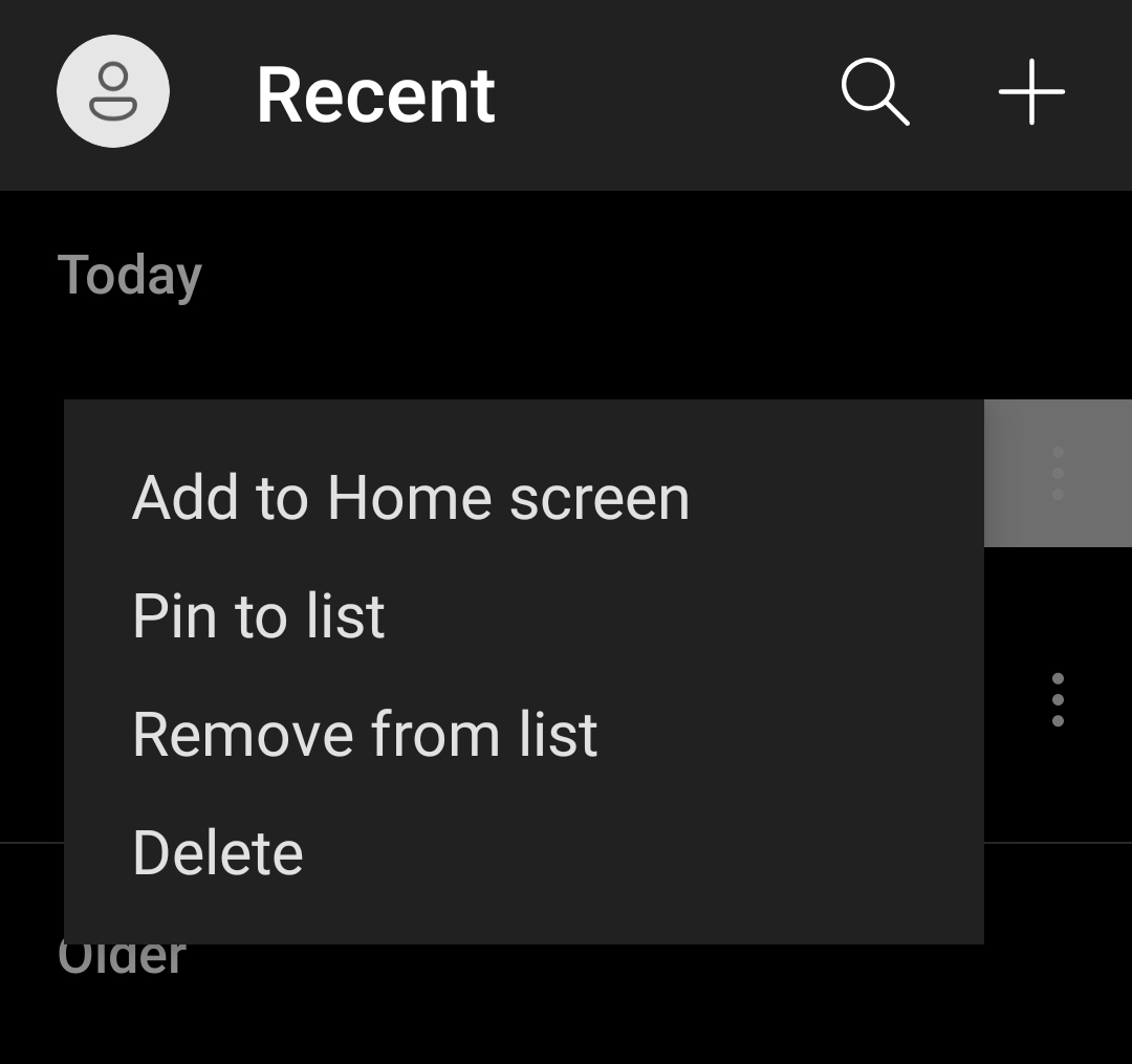 저장하기 후에 최근파일 목록이 보이는 화면에서 우측에 점 3개를 클릭하면 오피스에서 제공하는 메뉴가 나타난다.