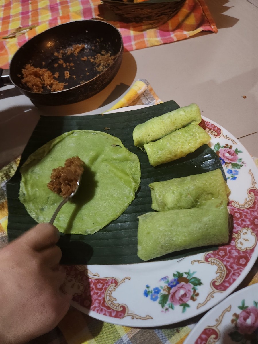 타피오카 전분으로 반죽을 해서 아래처럼 롤을 만들어 먹었다.