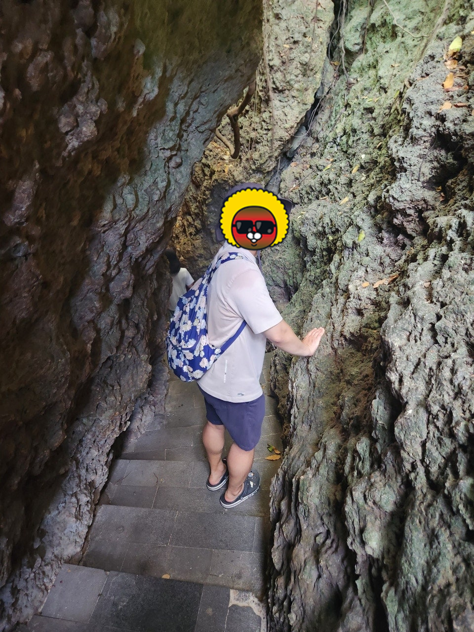 내려가는 길은 암벽 사이의 계단이고 곳곳에 원숭이들이 돌위에 있었다.