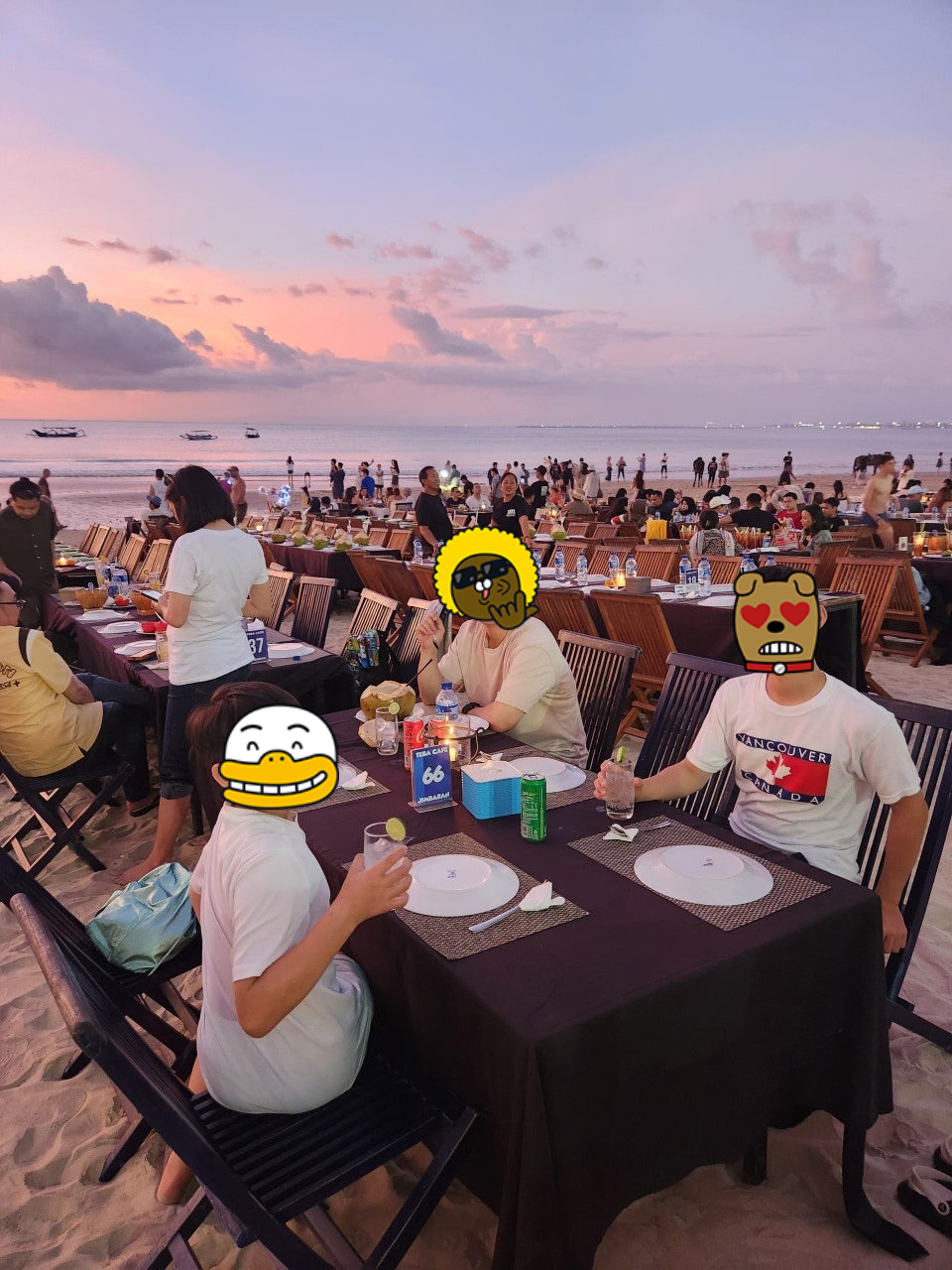 짐바란에 많은 해산물 식당들이 있는데 테바까페로 예약을 하고 식사를 Package로 된 식사 코스를 주문했다.