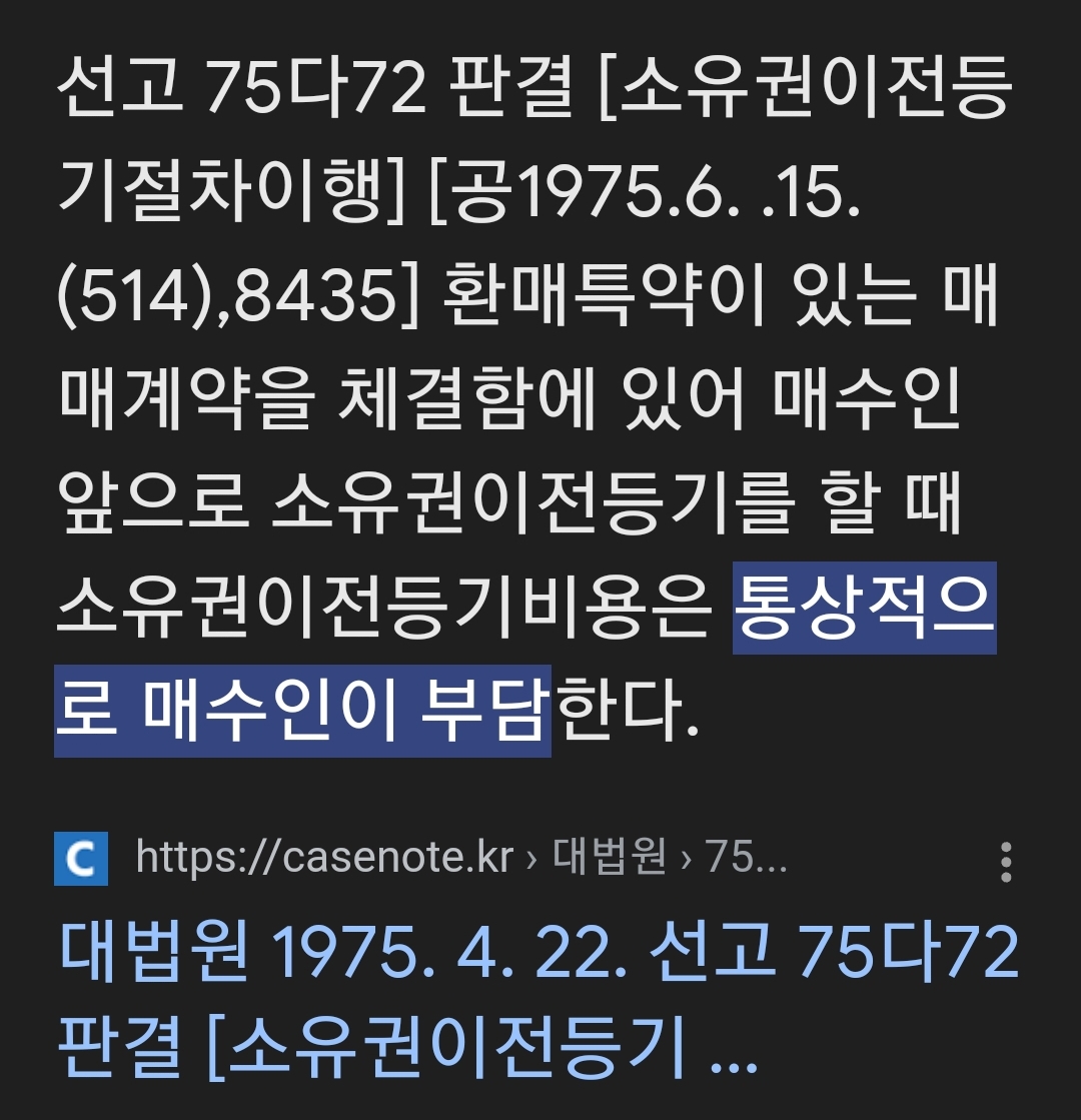 - 취득비용(취득세, 법무사비용) 은 매수인이 부담