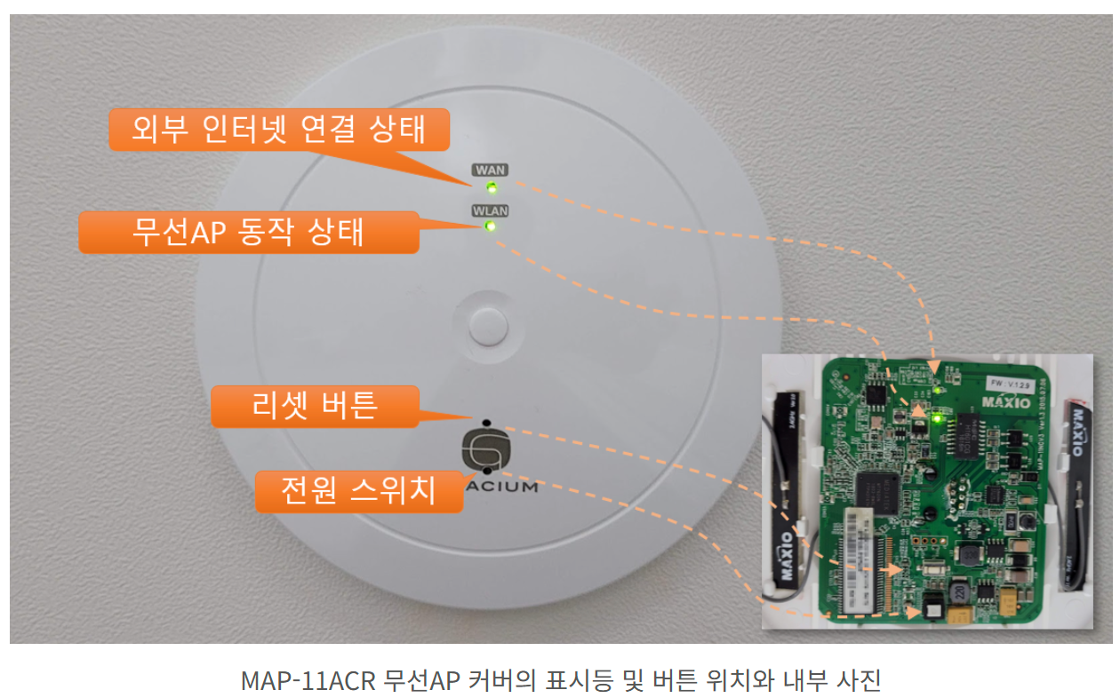 무선 AP의 ID가 다음과 같이 "MAP11N"으로 표시되며, 기본 접속 암호는 "1234567890"입니다.
