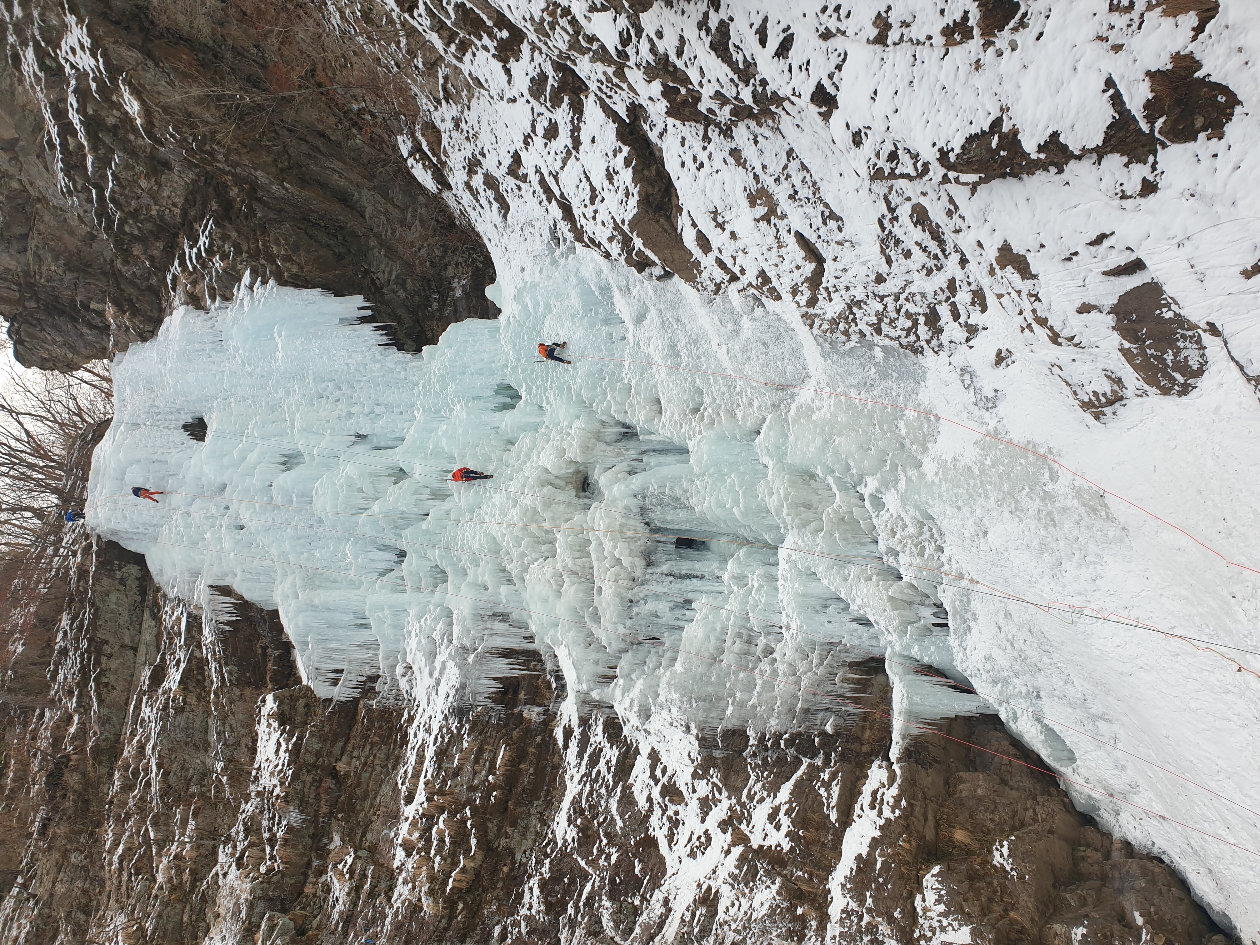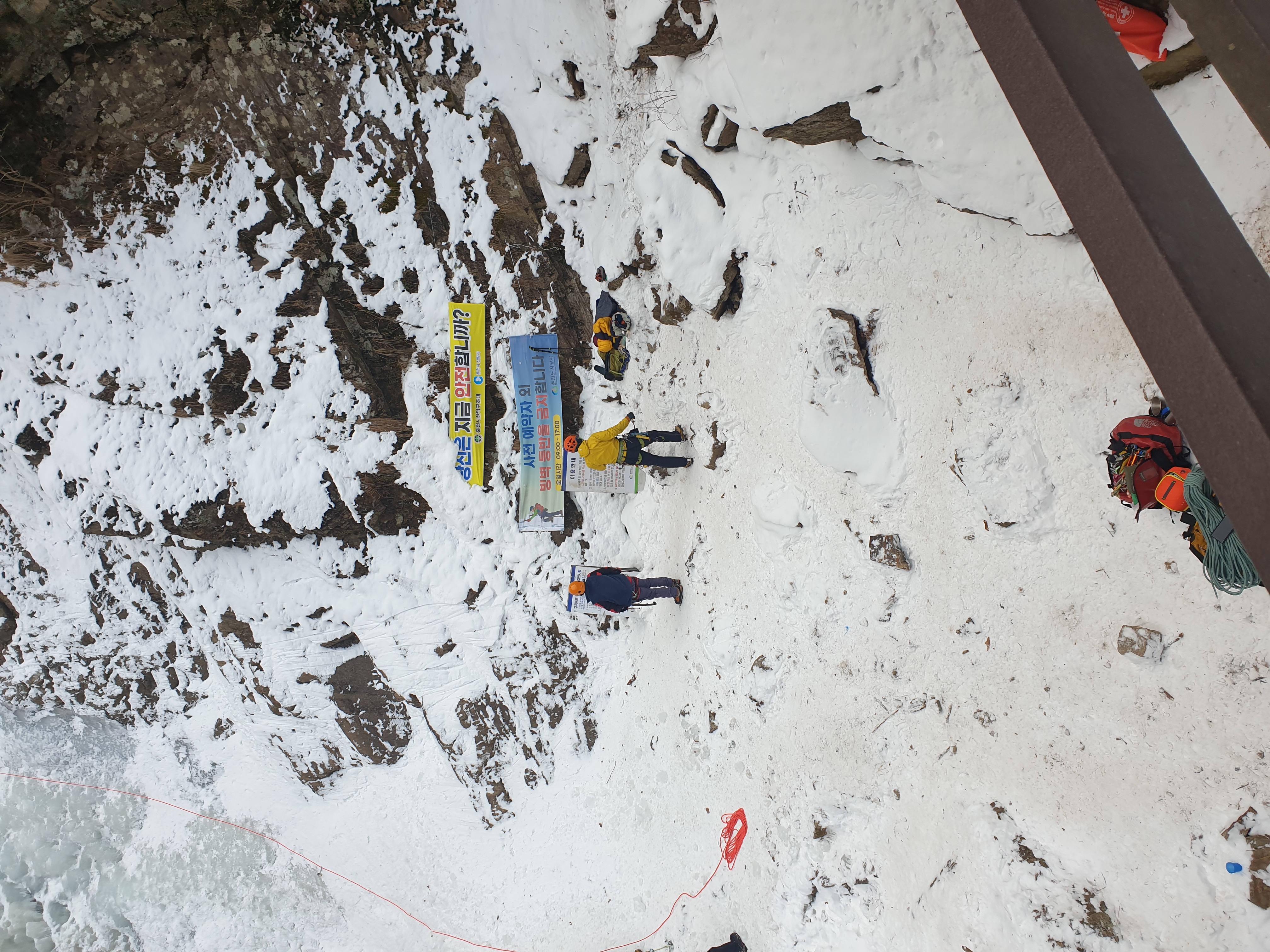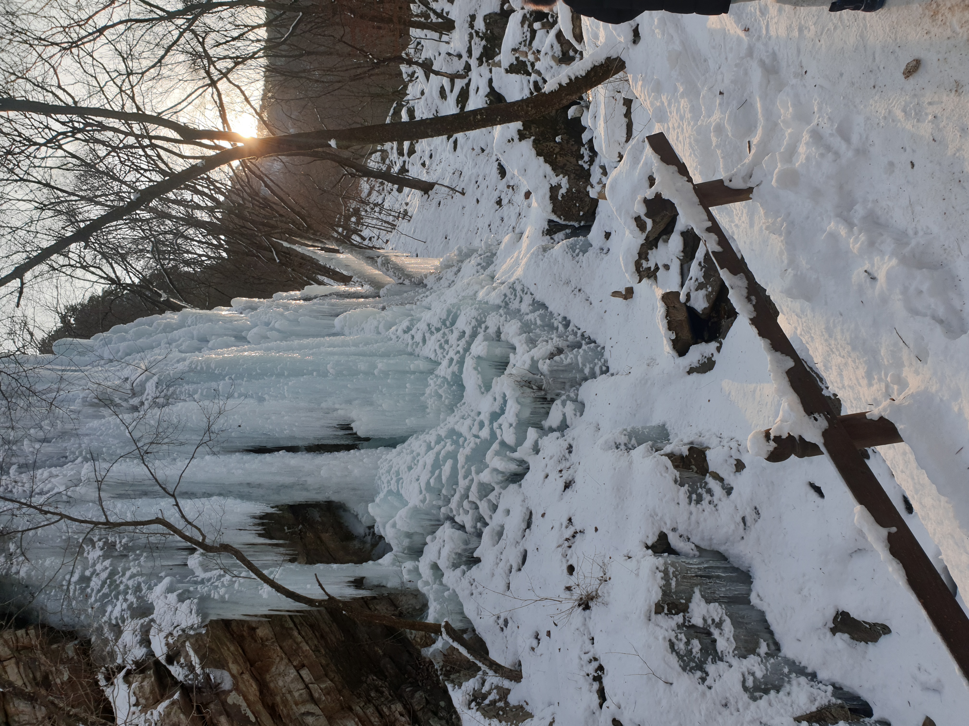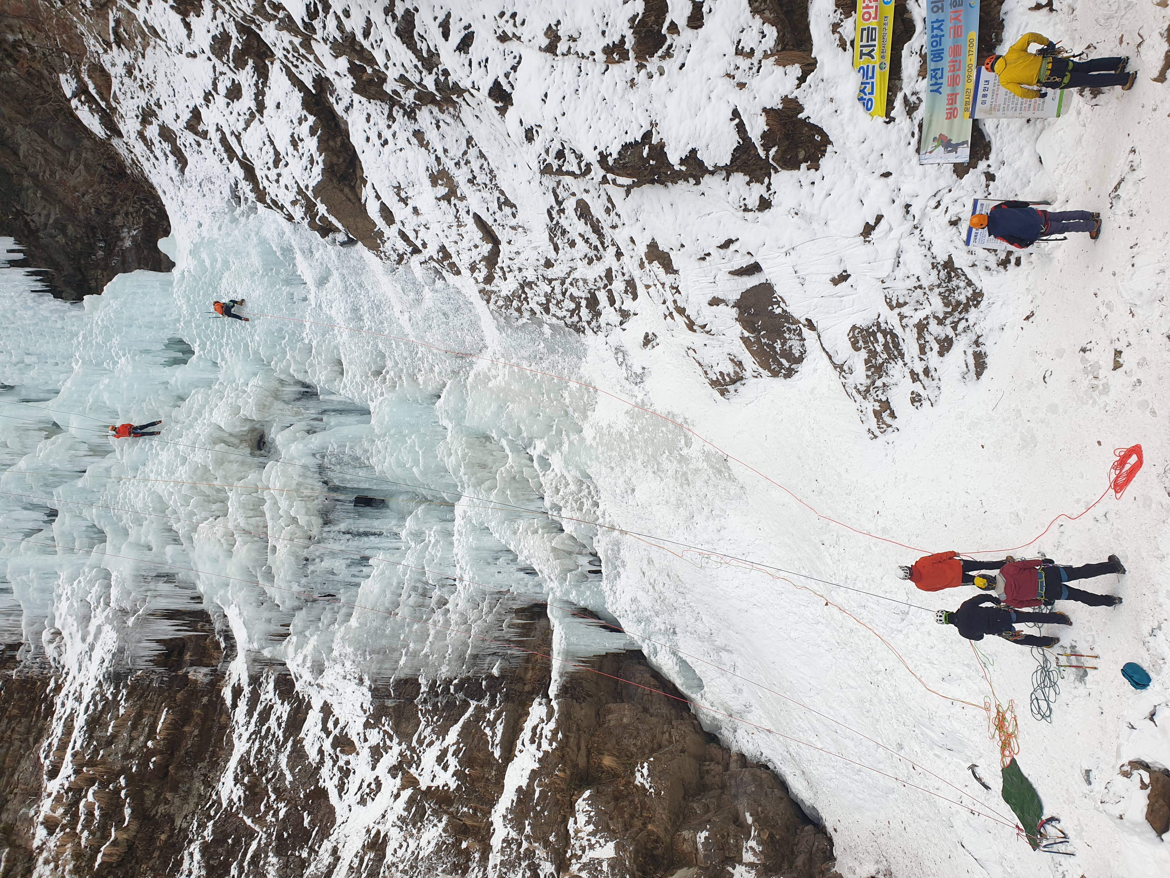 하얀 물줄기 하얀 빙벽“아~!”, 구곡폭포에서 빚어내는 아홉 굽이 흐르는 물줄기에 일곱 색깔 무지개가 서릴 때마다 고운 빛깔에 사람들은 탄성을 질렀다. 사람들은
