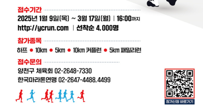 서울 양천구가 오는 4월 12일 '제14회 양천마라톤 대회'를 개최한다. 이 대회는 안양천에서 한강까지 이어지는 구간에서 진행되며, 1월 9일부터 3월 17일까지 참가자를 사전 모집한다.