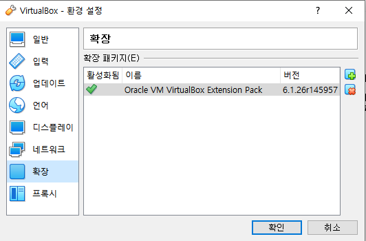 VirtualBox 6.1.26 Oracle VM VirtualBox Extension Pack 도 함께 설치