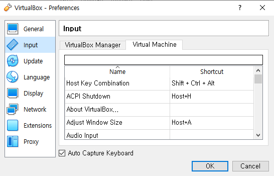 - 왼쪽 Ctrl로 설정하게 되면 VM에서 Ctrl키를 사용할 수 없기 때문에 잘 사용하지 않는 키로 세팅 필요