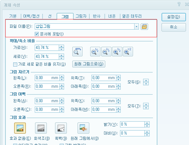 1. 문서의 그림을 오른쪽 클릭하고 [개체 속성]을 선택합니다.