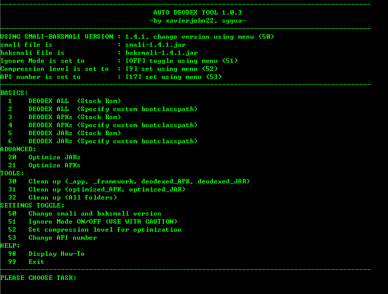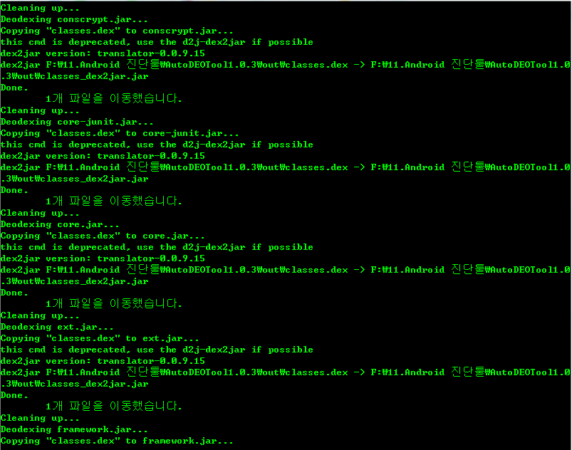 4. AutoDEOToolMain.bat 을 실행하고 1번 DeoDex All (Stock Rom)을 선택하면 deodexed_JAR 폴더 안에