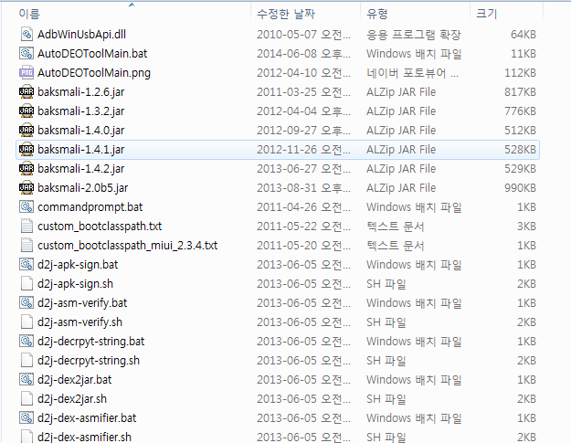 1. baksmali, smali 파일을 최신버젼으로 넣어주고 AutoDEOToolMain.bat에