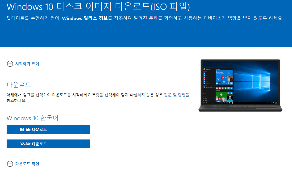 Windows 10 디스크 이미지 다운로드(ISO 파일)