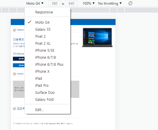 모바일로 Devide를 변경 후 F5를 눌러서 화면을 새로고침