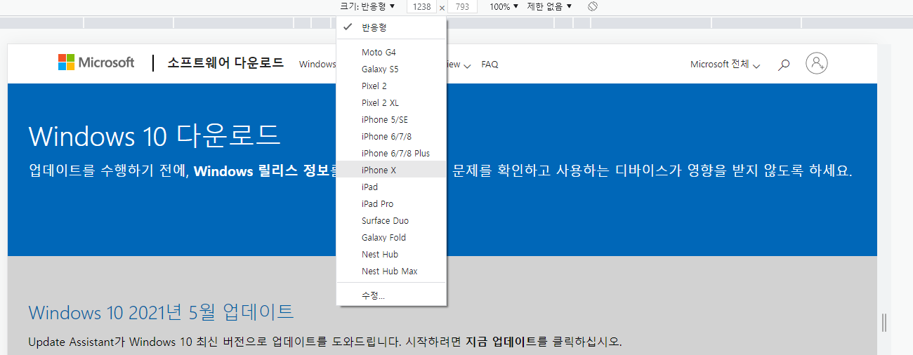 새로고침을 해도 IOS화면이 나타나지 않는 경우에는 아래처럼 URL 맨 뒤에 값을 Windows10ISO로 변경해서 접속해본다