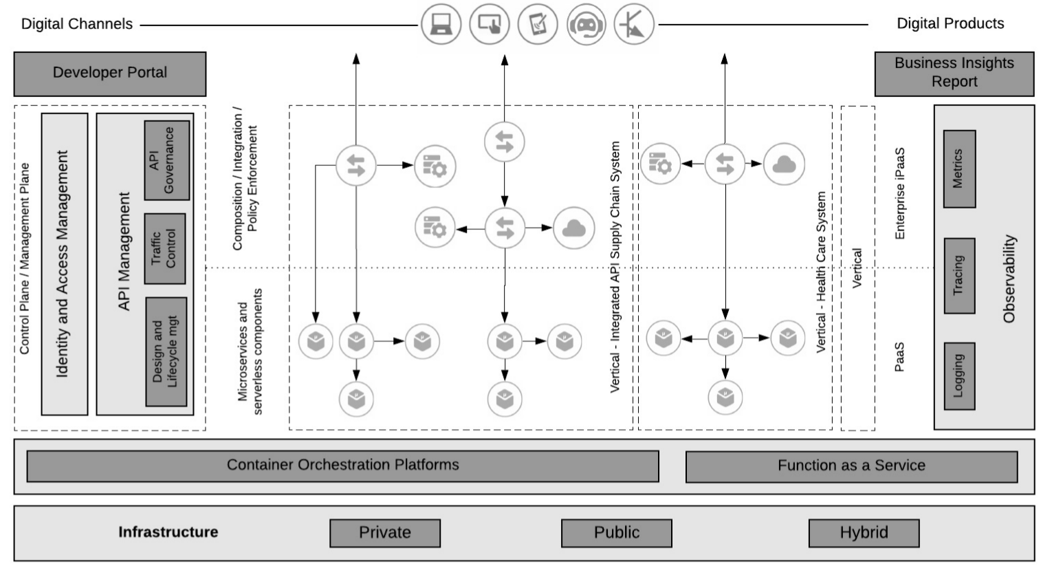 This article describes a vendor/technology-neutral reference architecture for a cloud native digital enterprise that can be mapped into different cloud-native platforms (Kubernetes and service mesh), cloud providers (Microsoft Azure, Amazon AWS, and Google