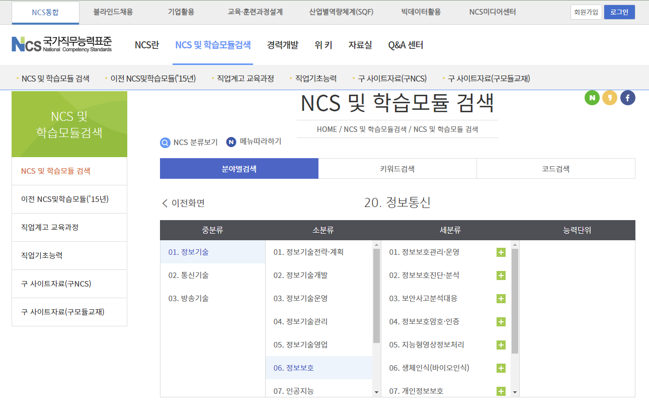 NCS 및 학습모듈검색 메뉴를 선택