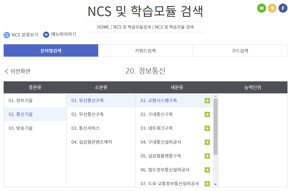 학습모듈은 중분류, 소분류, 세분류, 능력단위로 나누어진다.