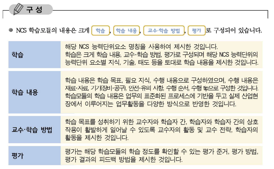 능력단위에 따라서 NCS학습모듈이 개발되고 아래와 같이 PDF파일로 첨부파일이 제공된다.