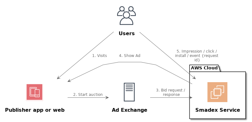 2.1.6. Add Text To Icons 2.1.6.1. Play Press to play around with this diagram source online. 2.1.6.2. Source 1 2 3 4 5 6 7 8 9 10 11 12@startuml !include !include !include !include EC2(EC2, "Smadex Service", " ") Users(Users, "Users", " ") TraditionalServe