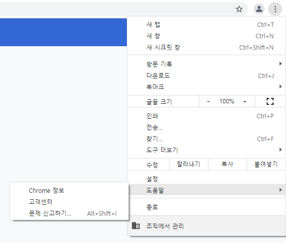 - 설정의 Crome정보 확인에서 업데이트 여부 체크