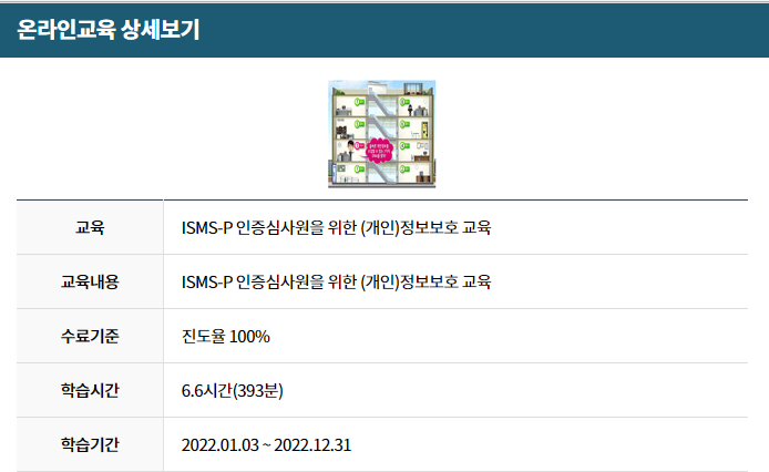 #개인정보보호포털 내 'ISMS-P 인증심사원을 위한 (개인)정보보호 교육'(6시간 분량) 2회 수강