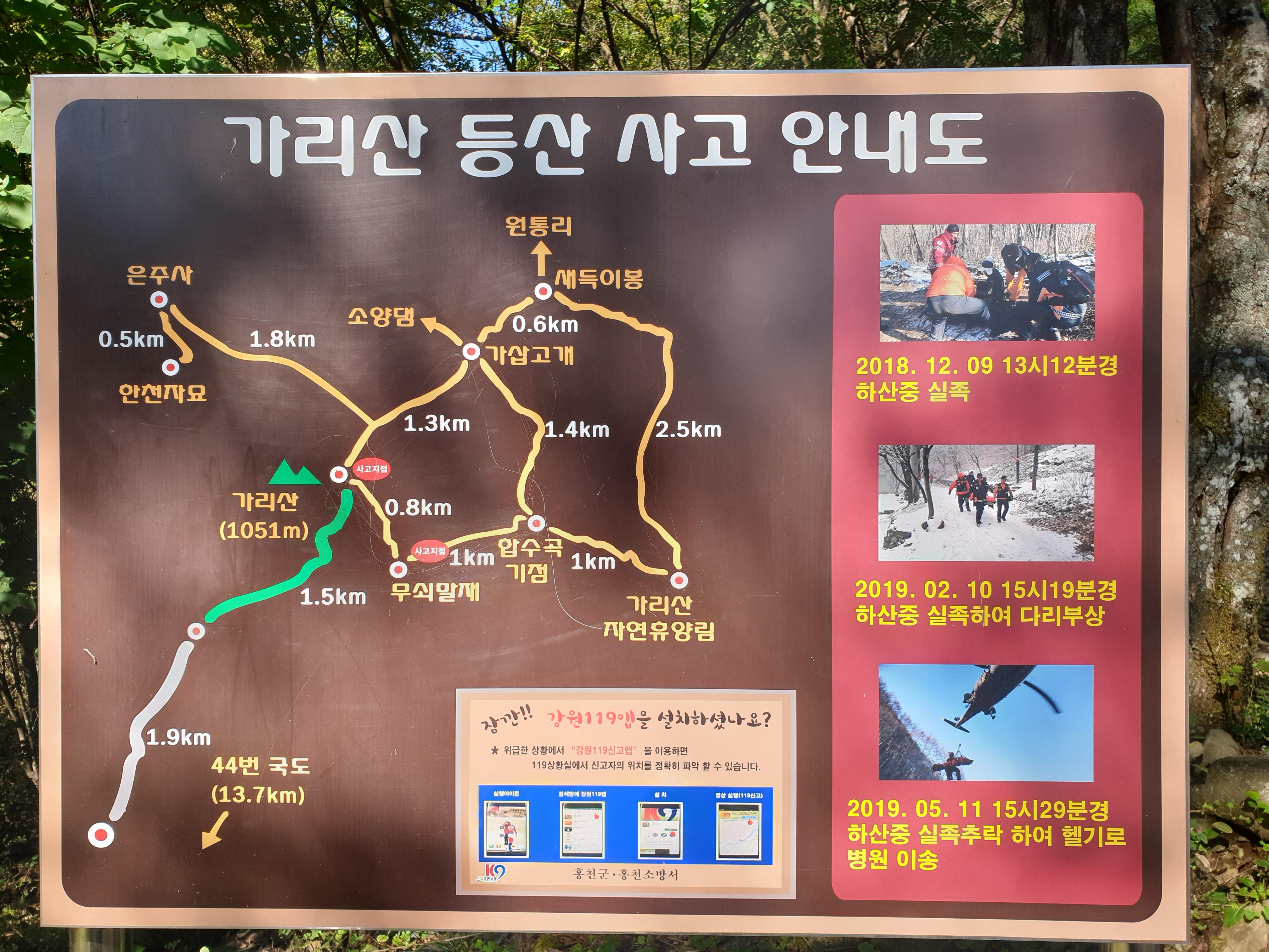오름직한 등산코스가 있어서 오전일찍 가리산에 오른 후 자연휴양림 숙소에 갔다.