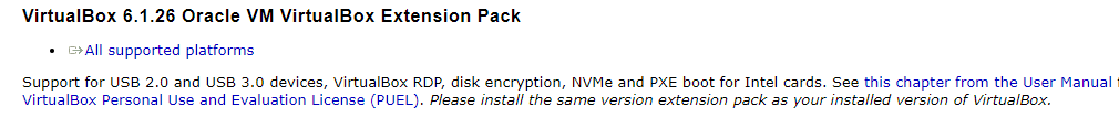 VirtualBox 6.1.26 Oracle VM VirtualBox Extension Pack 도 함께 설치