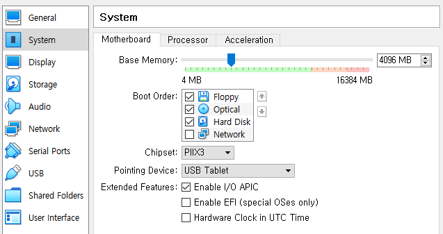 - System > Motherboard에서 Hardware Clock in UTC Time 체크박스 해제